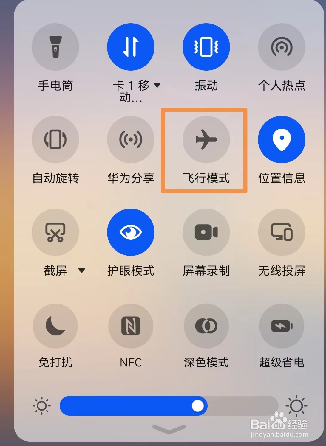 我们可以下拉菜单关闭手机的飞行模式。