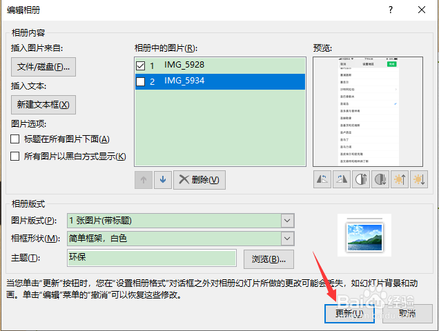 编辑完成后单击“更新”按钮,返回至幻灯片页面,为图片添加文字说明,并对个别的图片单独进行编辑。