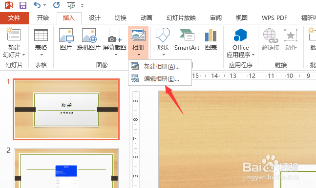 单击“图像”组中“相册”的下拉按钮,在展开的列表中选择“编辑相册”选项。