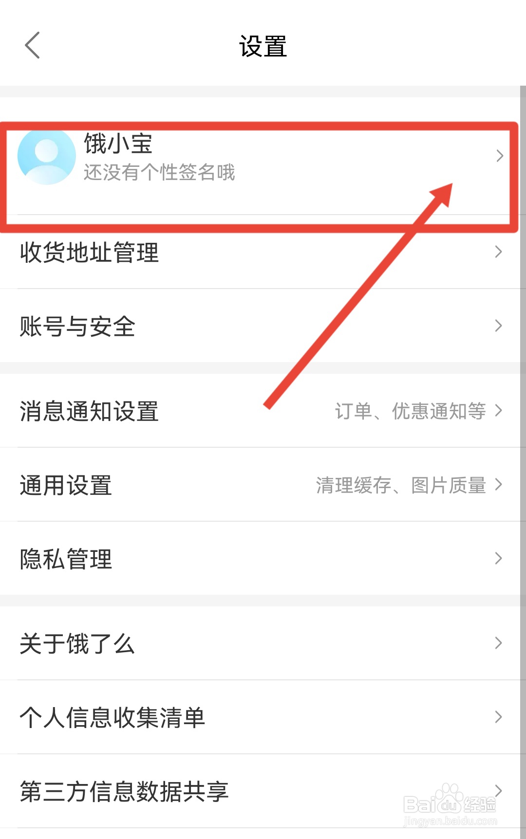 首先,打开饿了么app,进入“我的”页面,点击右上方的“设置”键。