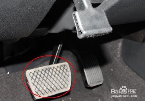 首先,踩下刹车踏板,如下图所示,然后进入下一步。