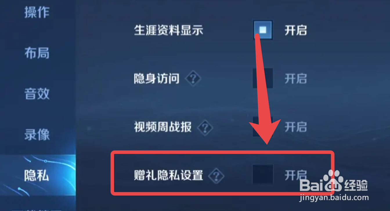 然后我们找到【赠礼隐私设置】点击勾选即可开启。