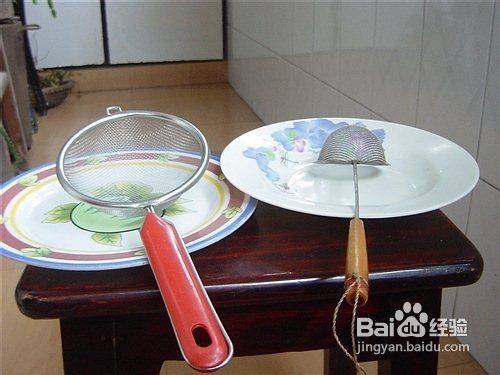 葡萄酒酿好以后,要把葡萄籽,葡萄皮,还有发了酵的果肉都滤掉,这就要滤渣。滤渣的工具我买的漏瓢(见图);有的人用纱布过滤也可以;反正因陋就简,家里有什么可以用来去掉渣滓的,就土法上马,物尽其用,留下葡萄酒就行了。要注意的是,滤渣的工具一定要严格消毒,不要把细菌带到酒里面去了哦。就用这两件工具过滤葡萄渣。