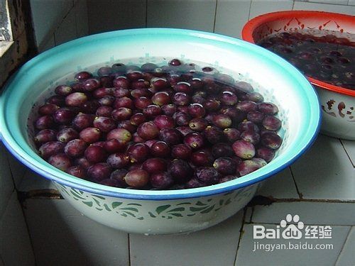 把剪好的葡萄冲洗干净后用淡盐水浸泡十分钟左右,这是为了去掉葡萄皮上的农药和其他有害物质(前面说到葡萄伤了皮的不要用来酿制葡萄酒,就是害怕浸泡时盐水浸到果肉里面去了,影响葡萄酒的质量)。然后再用清水冲洗一遍。